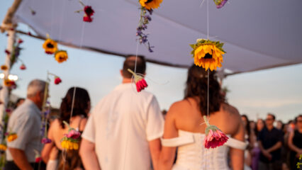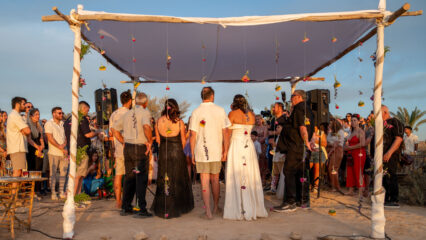 החופה היתה מהפנטת אל מול שקיעה מדברית ואז המשכנו אל מסיבת הלילה בחאן עד אור הבוקר 🙂