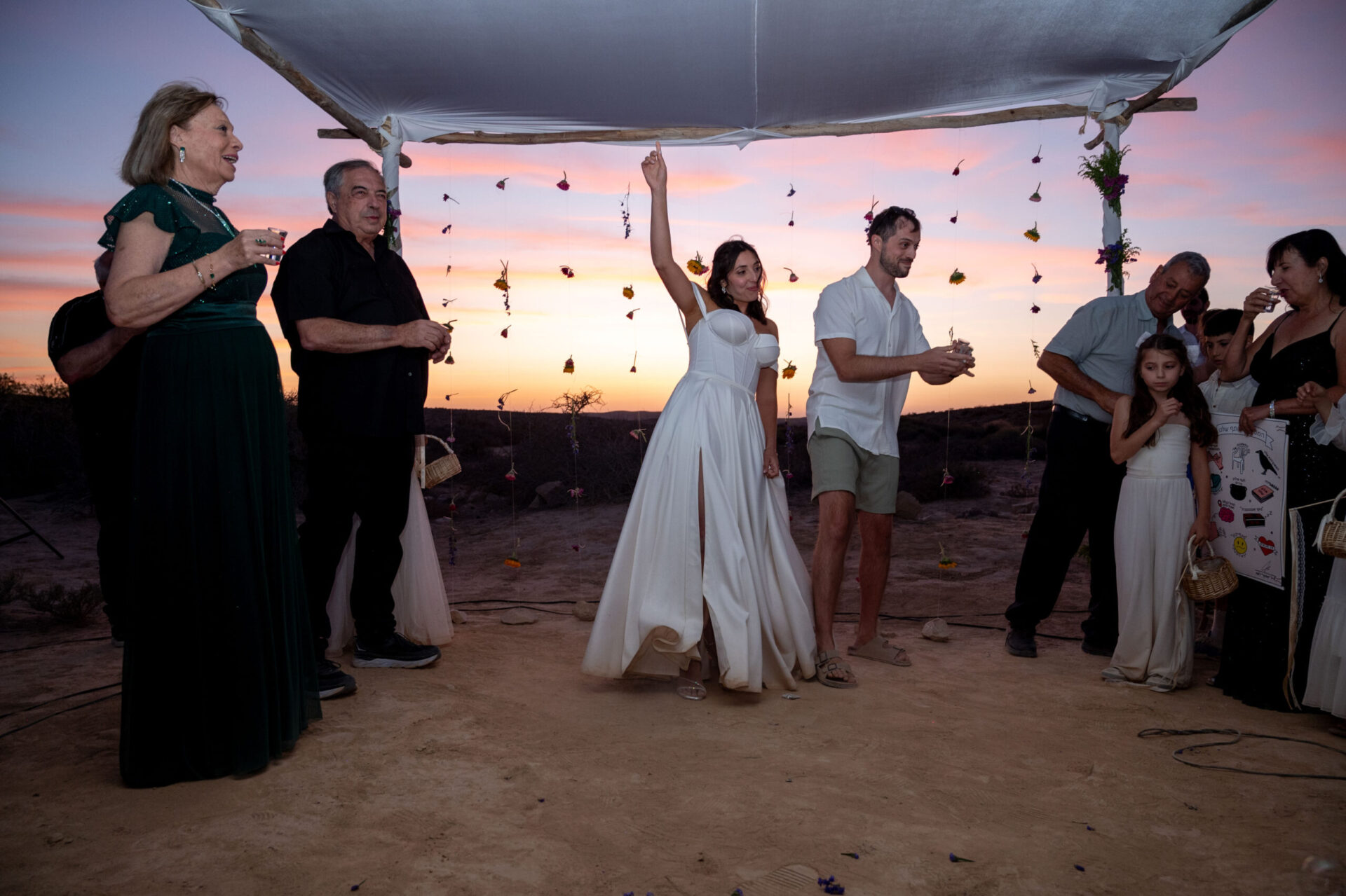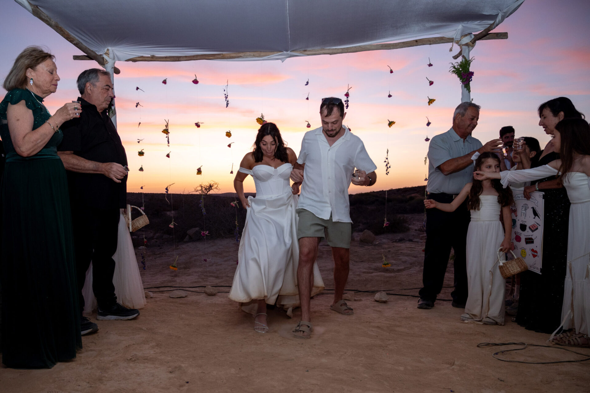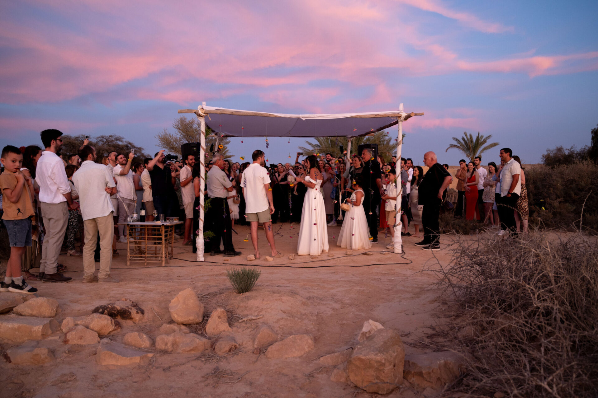החופה היתה מהפנטת אל מול שקיעה מדברית ואז המשכנו אל מסיבת הלילה בחאן עד אור הבוקר 🙂